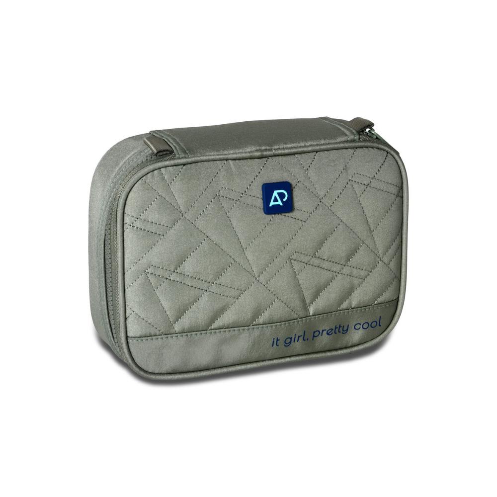 Visual encantador: Acabamento em matelassê e detalhes metálicos que destacam o estojo.