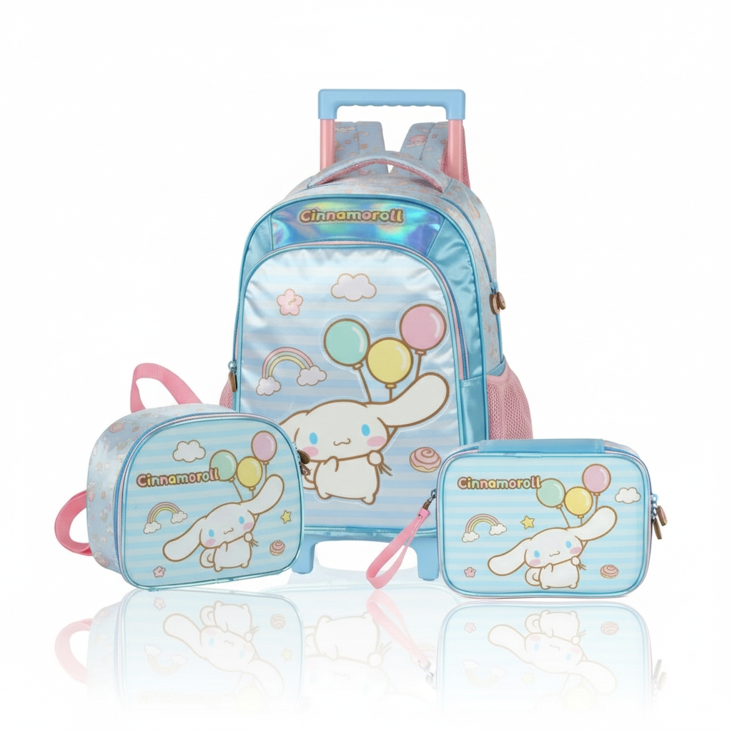 01 KIT - Mochila Carrinho Estojo Box e Lancheira Térmica Coleção Amigos Hello Kitty - Luxcel