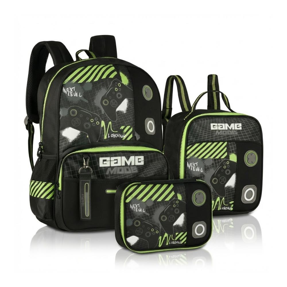 O Kit Mochila de Costas + Estojo Box + Lancheira Térmica Game Mode - Clio (VD25035J x VD25037E x VD25036L) é a combinação perfeita para estudantes que desejam unir organização, estilo e praticidade em um só conjunto. Inspirado no universo gamer, o kit traduz atitude e personalidade, tornando a rotina escolar mais divertida e funcional.
