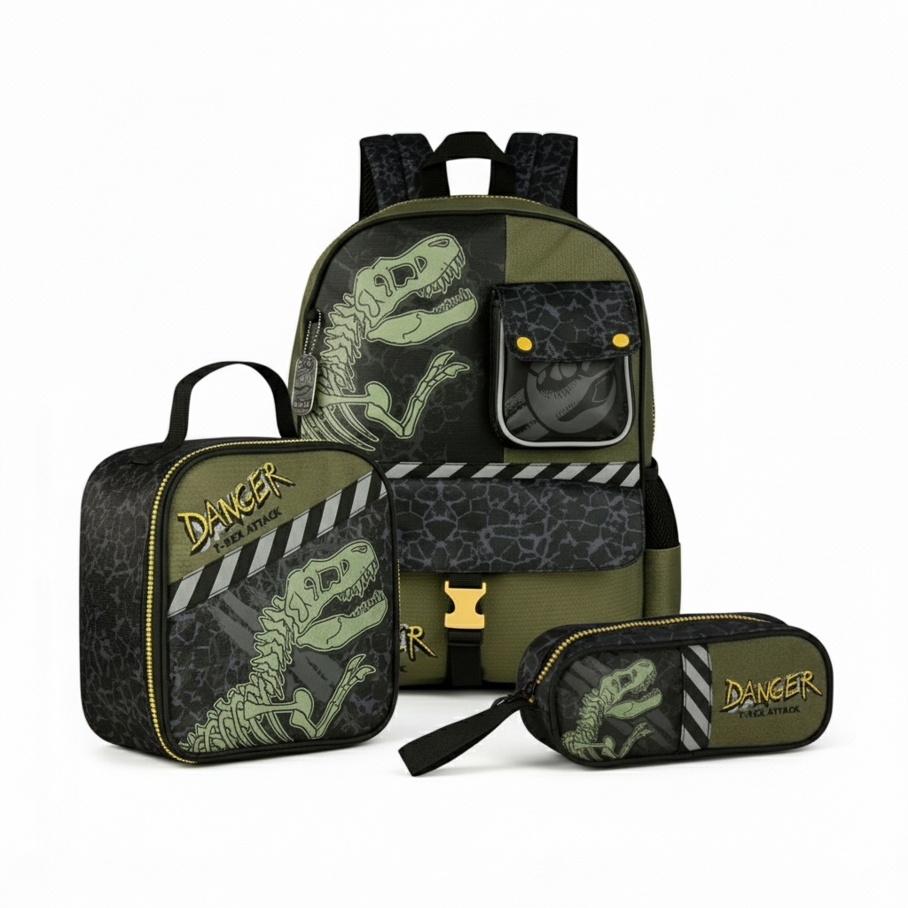 Ideal para crianças do ensino infantil e fundamental que adoram aventuras jurássicas! Seja para a escola, passeio ou viagem, esse kit é a escolha perfeita para unir diversão e praticidade.
