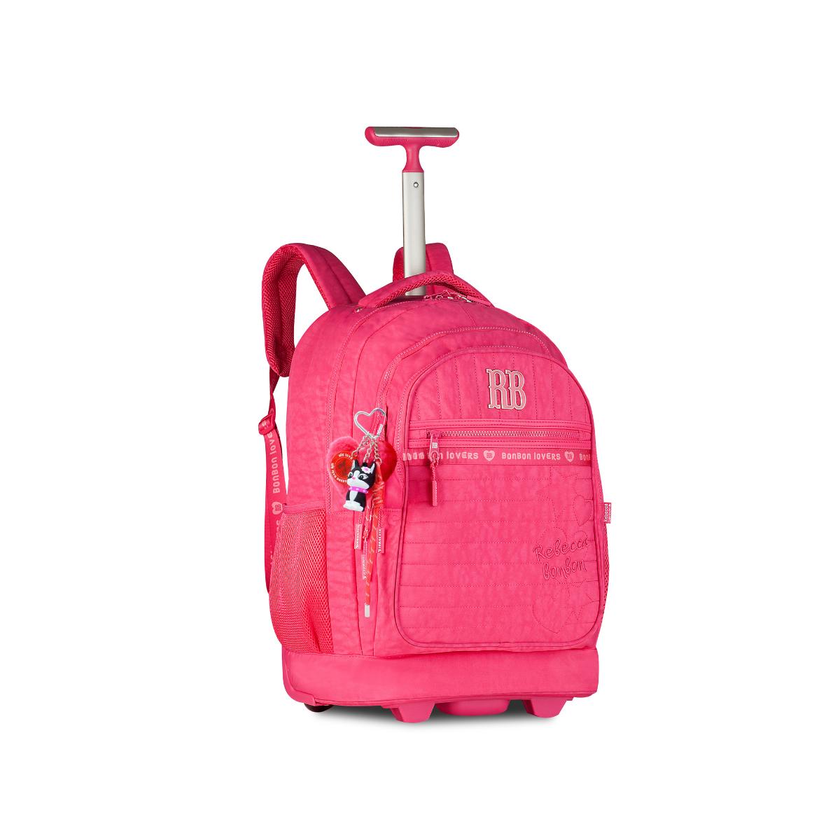 01 un - Mochila/Mala Carrinho Espaçosa C/ Charmes e Puxador que Expande - Rebecca Bonbon