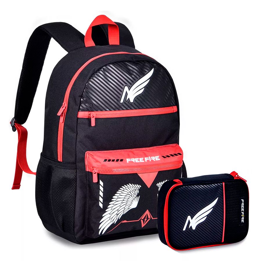 01 un - Mochila de Costas Free Fire Preto e Vermelho Asa - Clio.