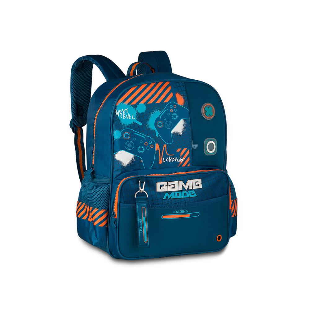 01 un - Mochila de Costas Game Mode Azul e Laranja - Clio