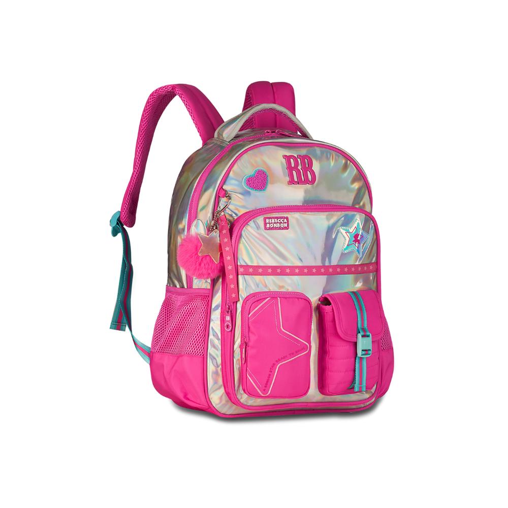 Se você curte um visual fashion com aquele toque mágico, essa mochila é a sua nova queridinha! A Rebecca Bonbon RB27020RS chega com acabamento holográfico que muda de cor conforme a luz, criando um efeito deslumbrante que vai fazer você brilhar por onde passar.