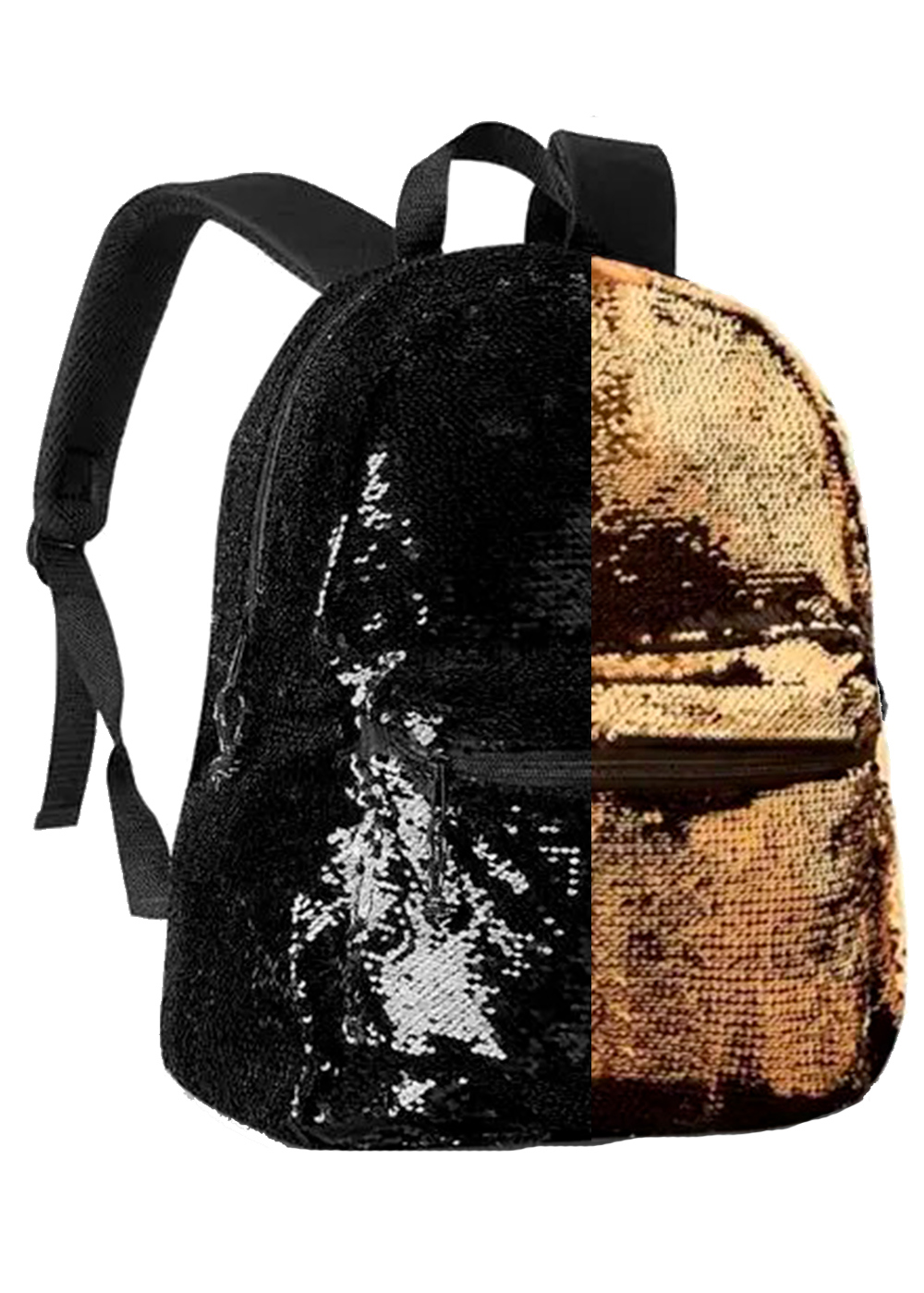 01 Mochila Escolar Costas Clio Girls Paetê Pretocom dourado Infantil .Ref .: ( CG2027 )