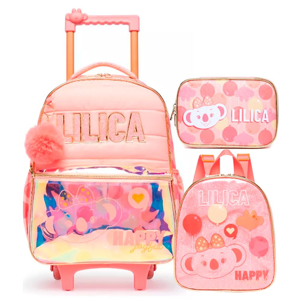 01 un - Mochila de Rodinhas Lilica Ripilica Happy Days Brilhosa - Rosa.