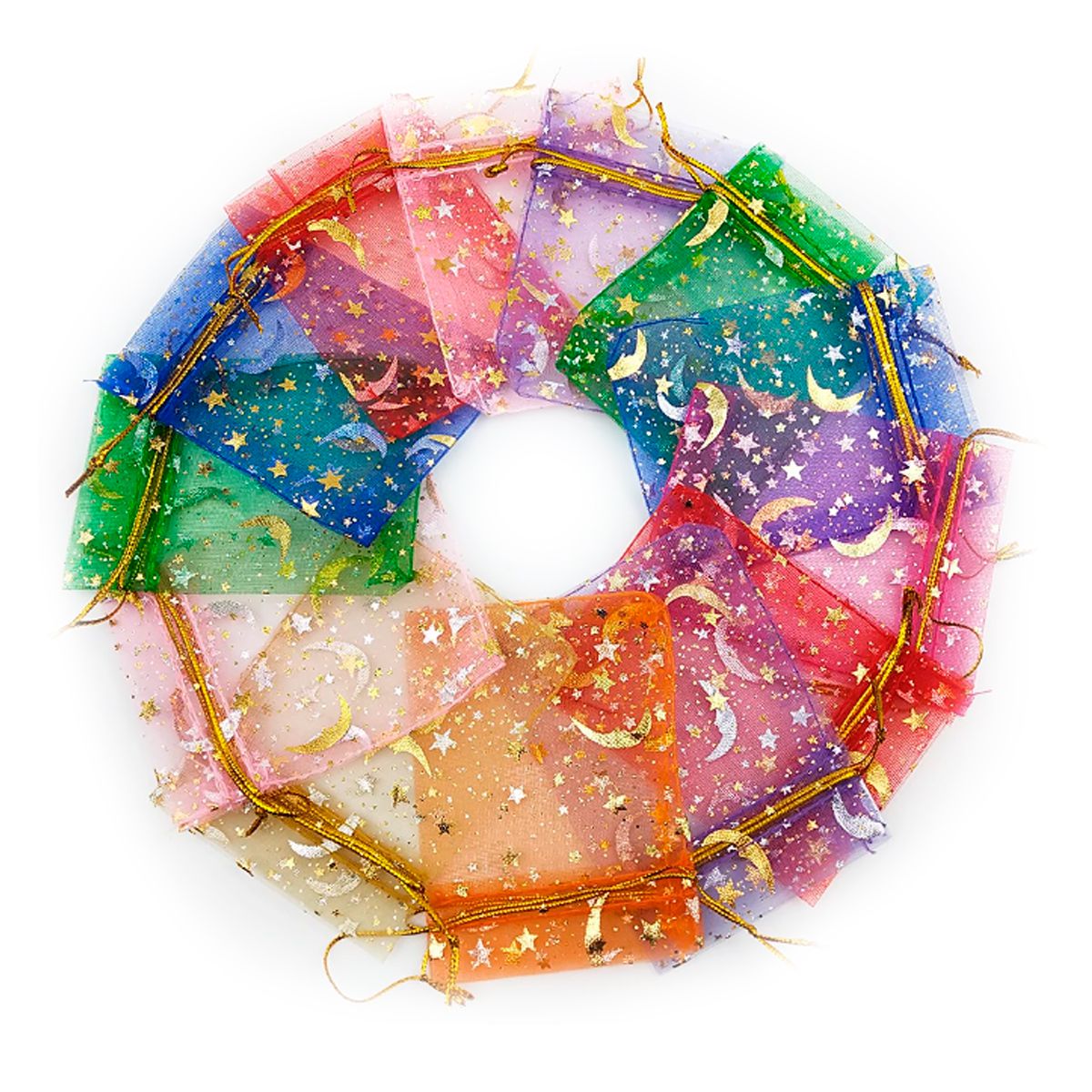 Pequenas bolsinhas de organza com estampas de estrela lunar, utilizados para festa, casamento, decoração, porta joias, embalagens e sacos de presente!