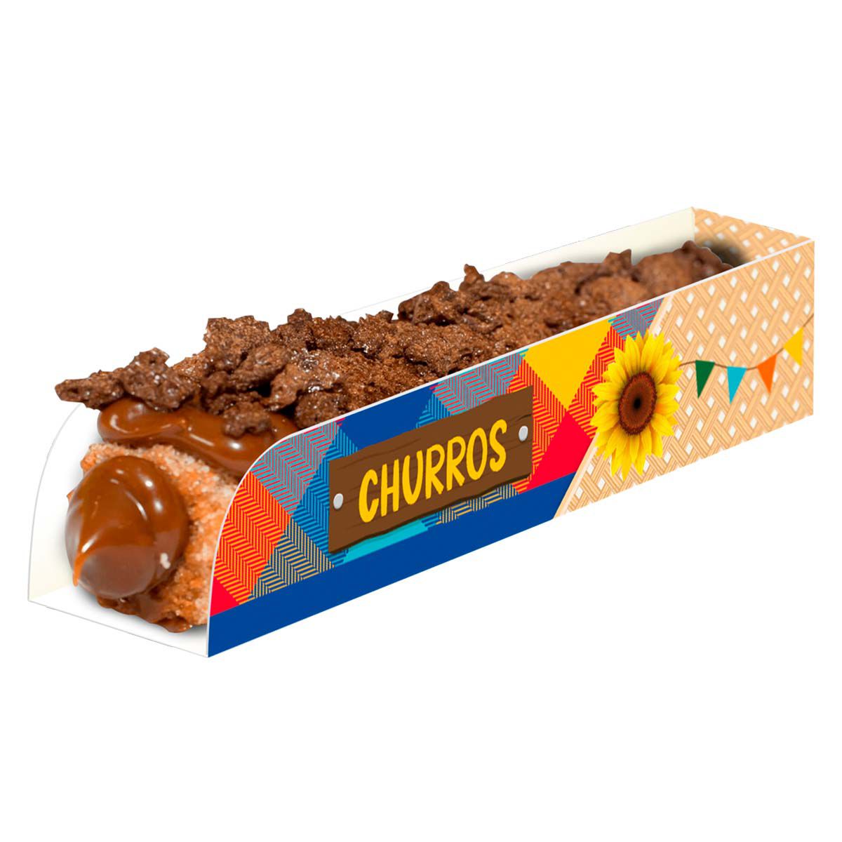 Uma embalagem que protege a mão de queimaduras e permite segurar o churros no maior estilo junino!