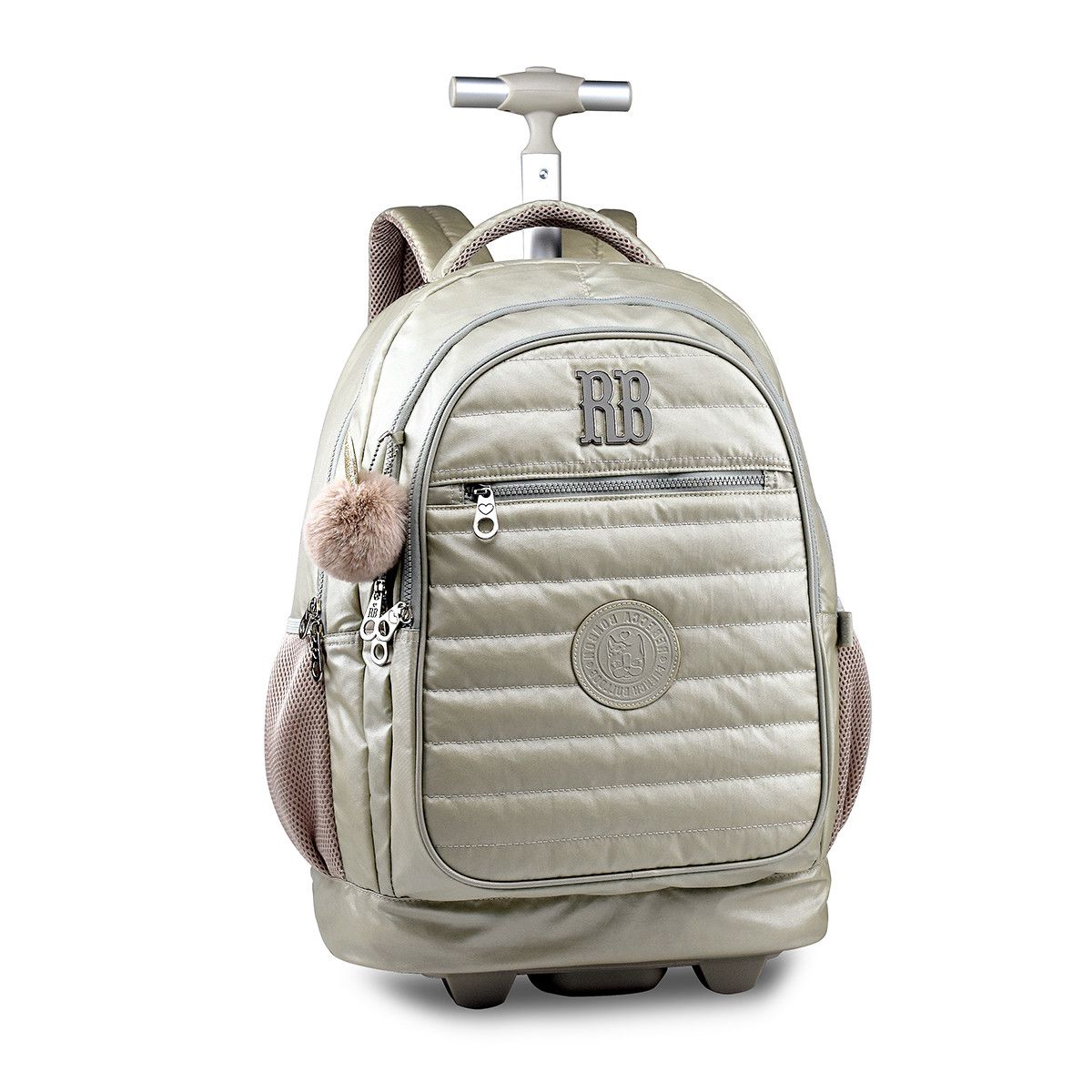 Mochila top para você arrasar em qualquer lugar, com rodas pra facilitar o transporte de seus pertences pra escola, faculdade, viagens, clube e etc. Confeccionada em crinkle e com costura reforçada para melhor duração e proteção com compartimento para guardar alças para melhor desempenho no modo mala, com compartimento para Notebook, alça de mão e costas acolchoadas, fechamento em zíper personalizado e ainda acompanha um lindo chaveiro de pompom.