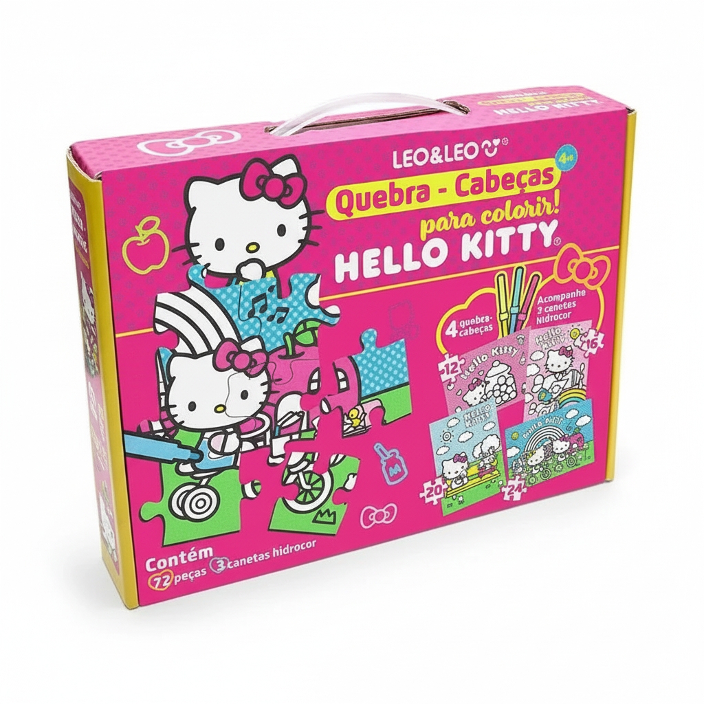 O Quebra-Cabeça 4 em 1 para Colorir Hello Kitty Leo&Leo (91716) é um brinquedo educativo e criativo que une diversão, aprendizado e arte. Com peças que formam quatro diferentes imagens da personagem Hello Kitty, ele permite que as crianças montem os quebra-cabeças e depois soltem a imaginação colorindo cada cena, tornando a brincadeira ainda mais envolvente.